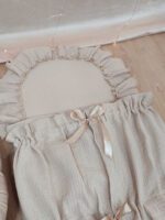 Naš jastuk za nošenje bebe idealan je za prve dane i tjedne vaše bebe. Izrađen od 100% pamučnog muslina, poznatog po iznimnoj mekoći i prozračnosti, nježno obavija bebinu osjetljivu kožu i pruža joj osjećaj topline i sigurnosti.