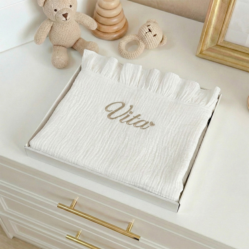 Naša personalizirana dekica od muslina stvorena je da bude upravo to-onaj jedan, poseban predmet, koji prati vašu bebu od prvog izlaska iz bolnice, preko vožnje kolicima, pa sve do najslađih snova u krevetiću.