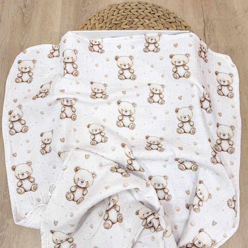 Naša dekica od muslina sa slatkim uzorkom stvorena je da bude upravo to-onaj jedan, poseban predmet, koji prati vašu bebu od prvog izlaska iz bolnice, preko vožnje kolicima, pa sve do najslađih snova u krevetiću.