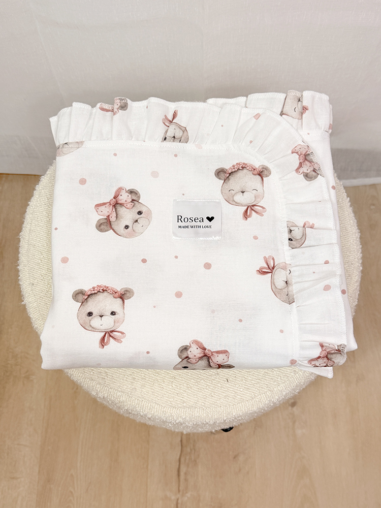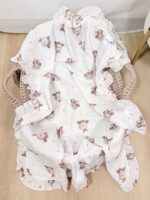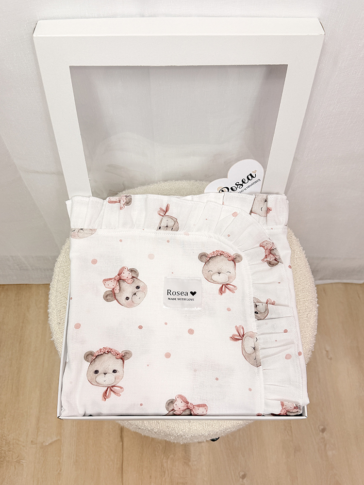 Naša dekica od muslina sa slatkim uzorkom stvorena je da bude onaj jedan, poseban predmet, koji prati vašu bebu od prvog izlaska iz bolnice, preko vožnje kolicima, pa sve do najslađih snova u krevetiću.