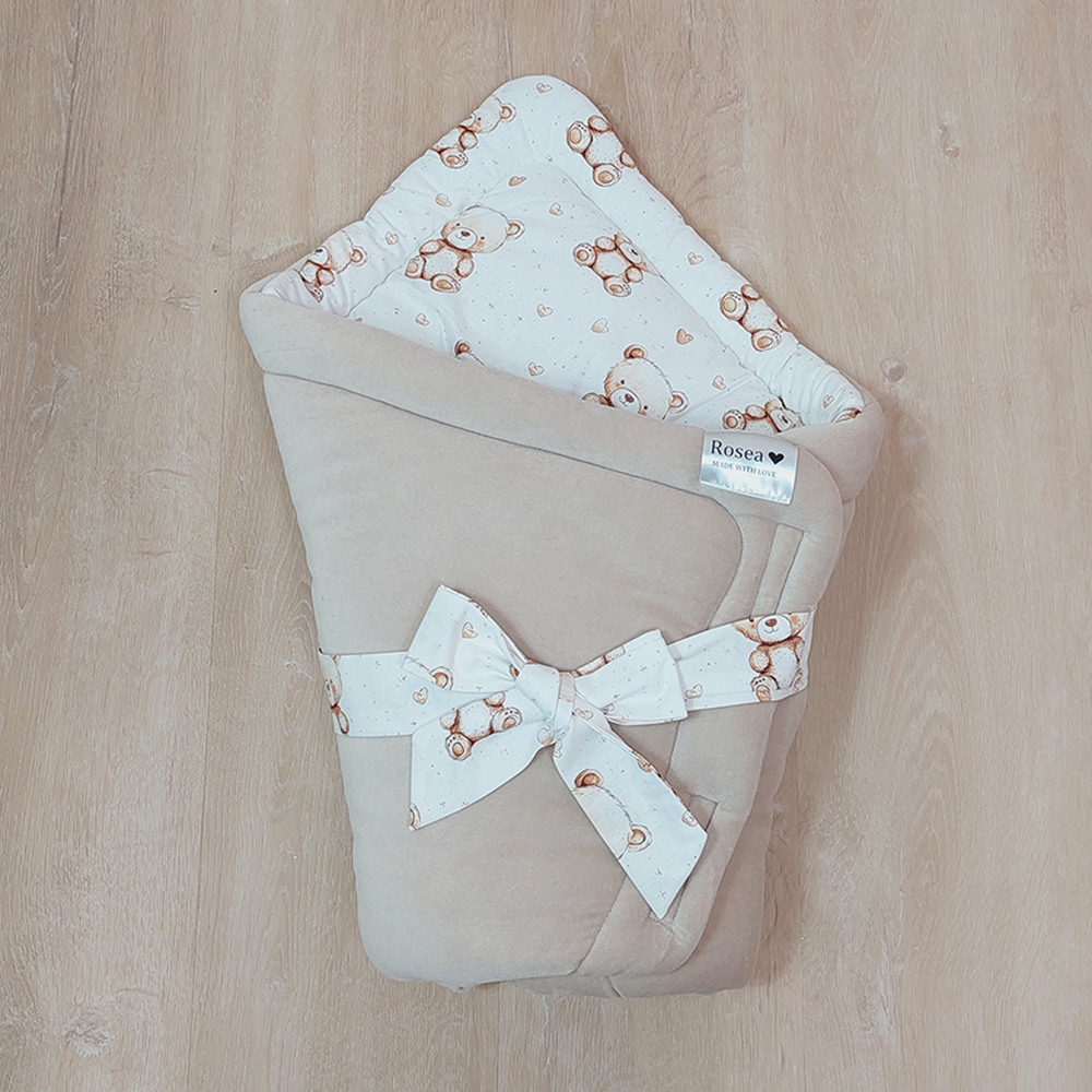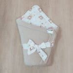 S vanjske strane je mekani, pamučni velur, a s unutarnje, gdje beba leži, 100% prirodni pamuk s predivnim uzorkom.