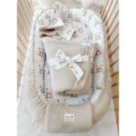 Naše proizvode možete iskombinirati u istom uzorku, pa tako pronađite velur dekicu, gnijezdo za bebe i mazilicu koji prekrasno pašu na jastuk.