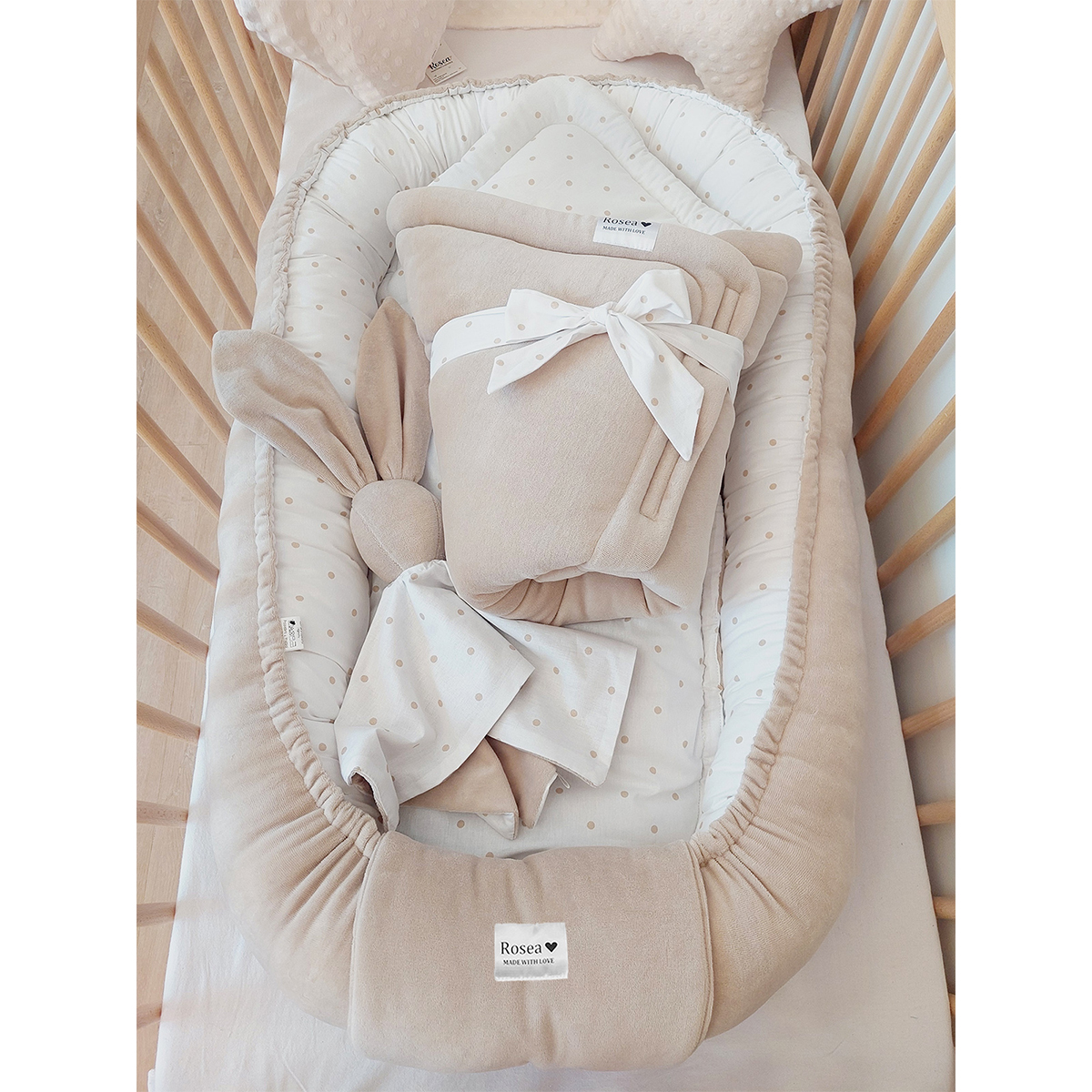 Naše proizvode možete iskombinirati u istom uzorku, pa tako pronađite velur dekicu, gnijezdo za bebe i mazilicu koji prekrasno pašu na jastuk.
