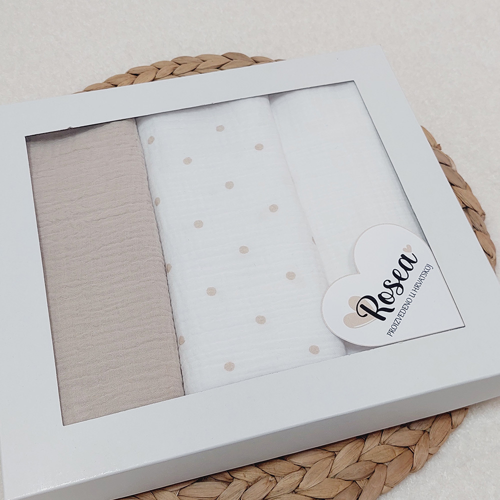 MUSLIN PELENE SET 3/1 BEŽ TOČKICE