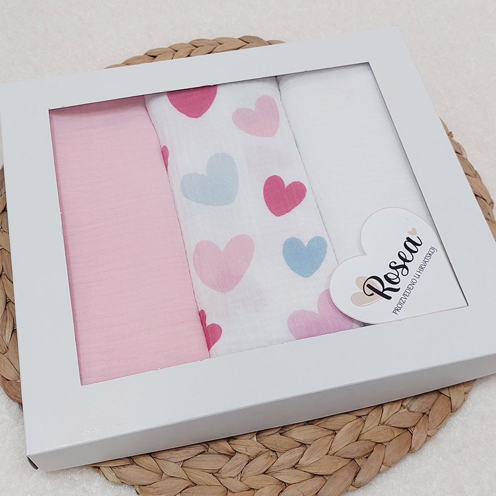 MUSLIN PELENE SET 3/1 ŠARENA SRCA