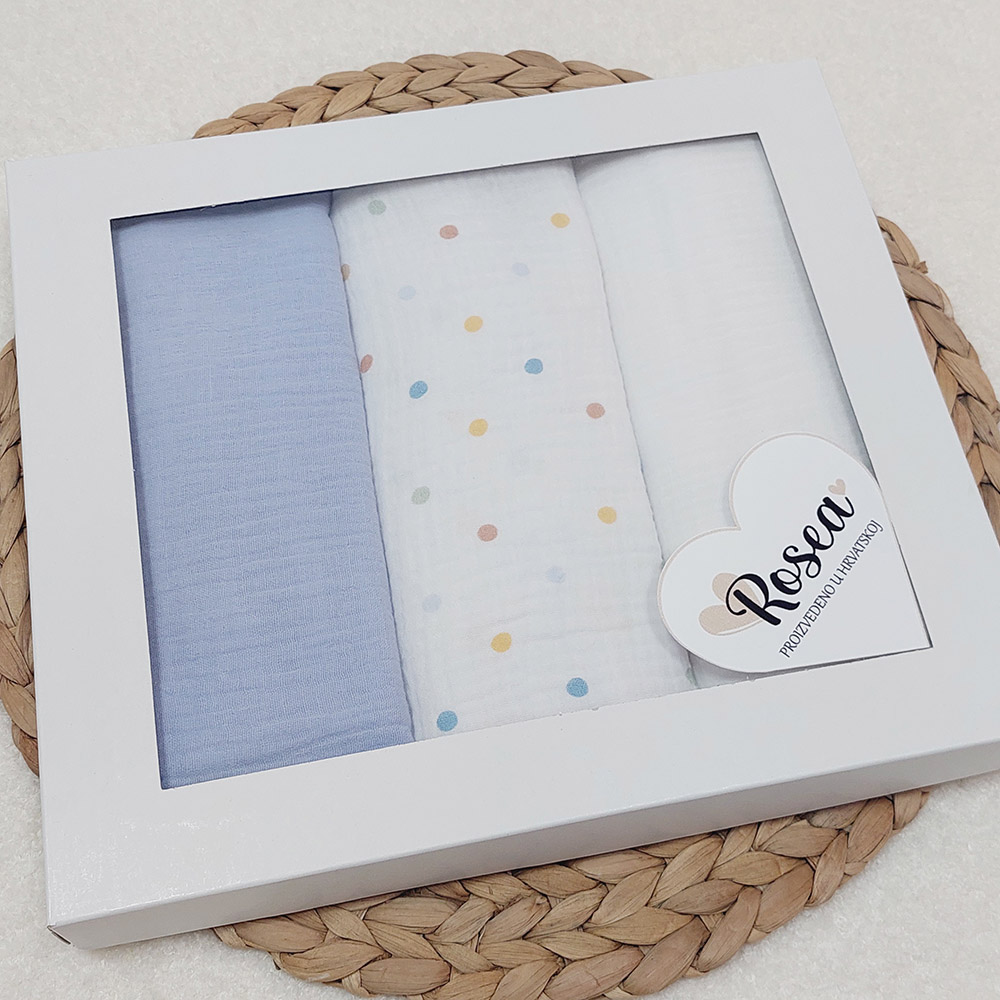 MUSLIN PELENE SET 3/1 ŠARENE TOČKICE