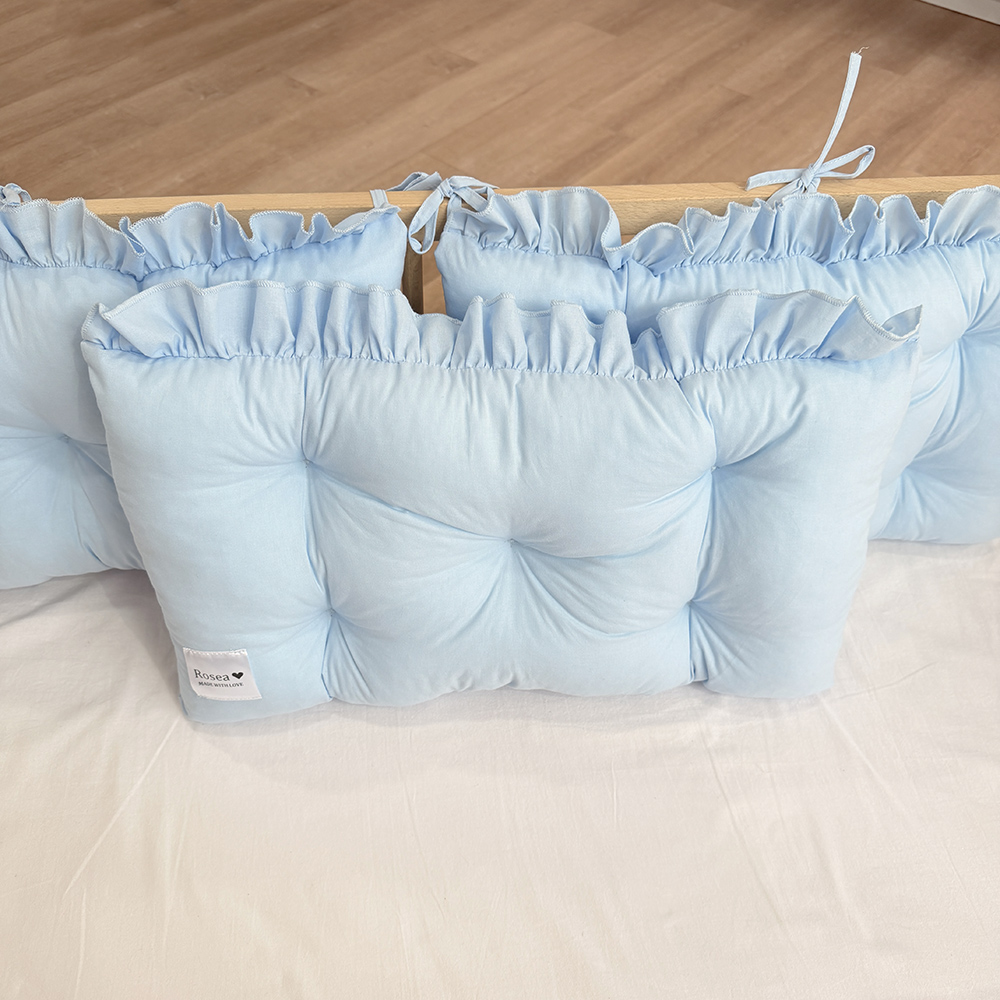 Jastučići koji zajedno čine ogradicu za krevetić prodaju se pojedinačno-tako da sami možete složiti koliko veliku ogradicu želite.