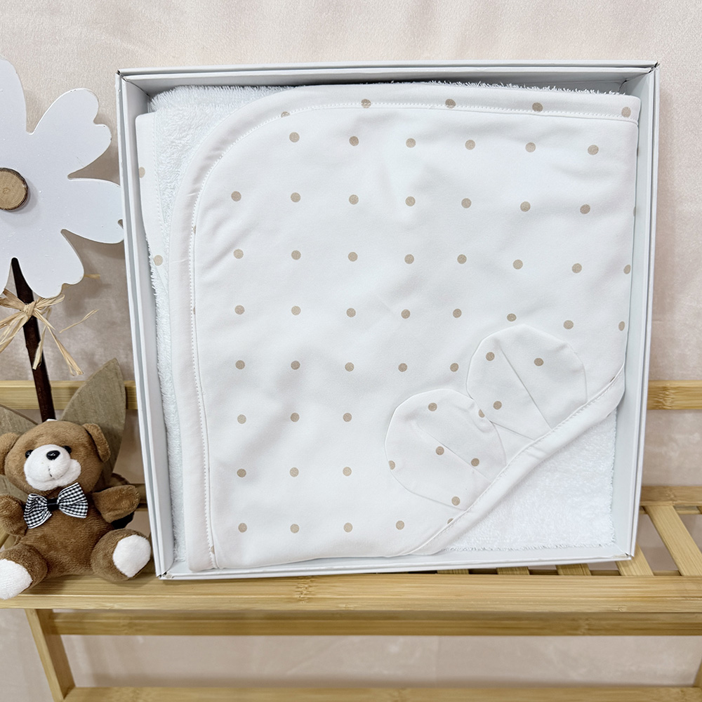 Naš pamučni ručnik za bebe izrađen je od 100% visokokvalitetnog pamuka, posebno prilagođen osjetljivoj dječjoj koži. Izuzetno je mekan, nježan i upijajući, savršen za prve kupke, svakodnevnu njegu i tople zagrljaje nakon kupanja.