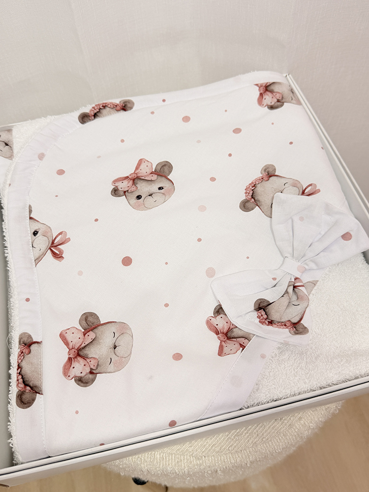 Naš pamučni ručnik za bebe izrađen je od 100% visokokvalitetnog pamuka, posebno prilagođen osjetljivoj dječjoj koži. Izuzetno je mekan, nježan i upijajući, savršen za prve kupke, svakodnevnu njegu i tople zagrljaje nakon kupanja.