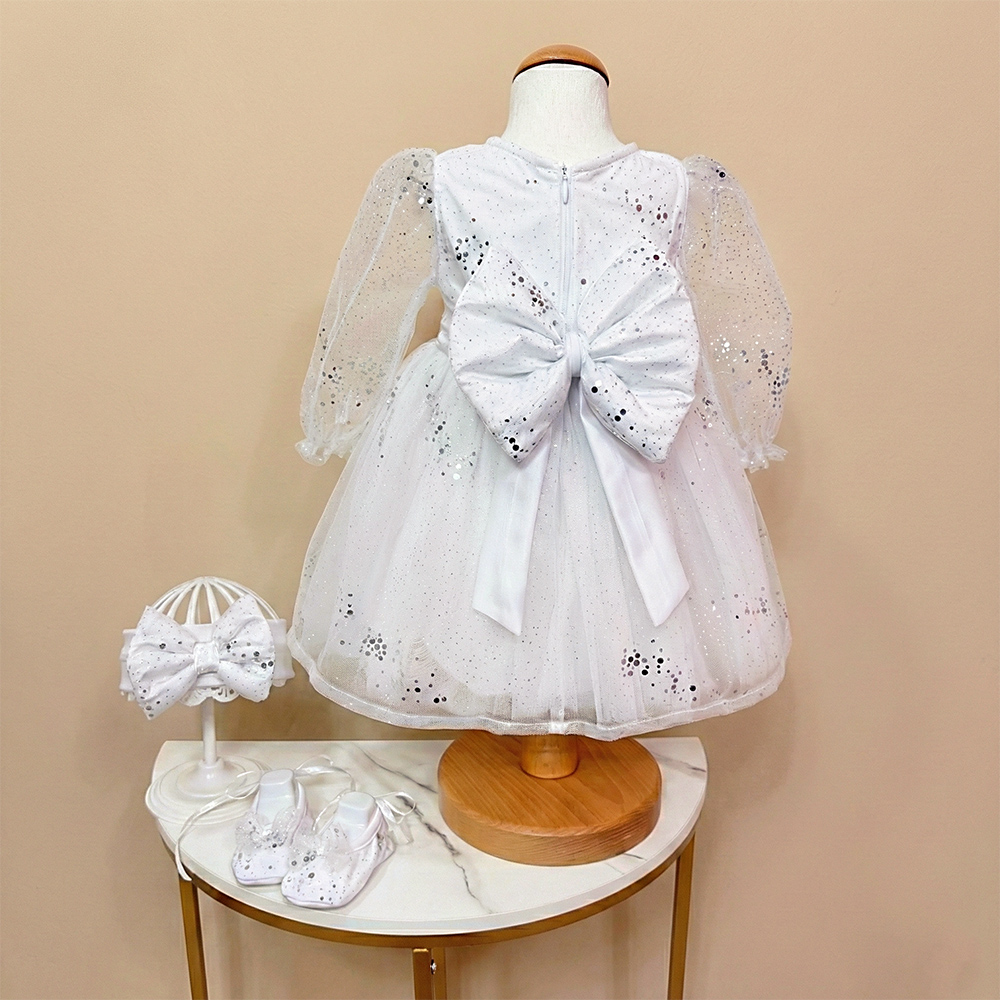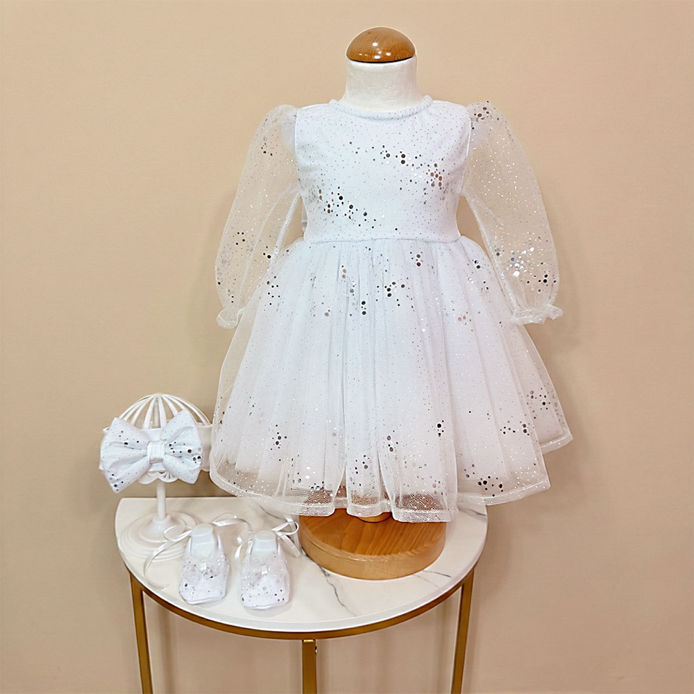 Haljina za svečane i posebne prigode čiju posebnost čini svjetlucavi til. Ova svečana haljina za djevojčice podstavljena je pamukom i upotpunjuje razne trenutke🤍